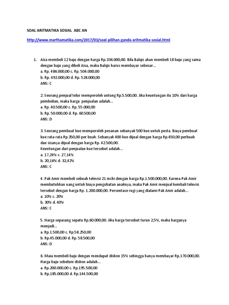 Soal Dan Jawaban Aritmatika Sosial Kelas 7 Kumpulan Contoh Surat Dan Soal Terlengkap from i2.wp.com Maybe you would like to learn more about one of these? We did not find results for: Check spelling or type a new query. Contoh soal untung dan rugi aritmatika sosial.