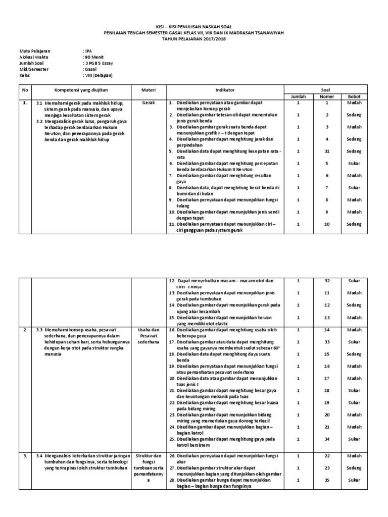 Tujuannya sebagai referensi dalam persiapan pembuatan soal dan ujian pat untuk semester genap tahun pelajaran 2020/2021. Kisi kisi uts/ pts ipa smp/ mts kelas 8 semester 1.dapatkan kisi kisi penulisan soal ulangan tengah semester atau penilaian tengah semester mata pelajaran ilmu pengetahuan alam untuk sekolah menengah pertama/ madrasah tsanawiyah kelas viii semester ganjil kurikulum 2013/ kurtilas/ k 13. Kisi kisi uts pts ipa smp mts kelas 8 semester 1 dapatkan kisi kisi penulisan soal ulangan tengah semester atau penilaian tengah semester mata pelajaran ilmu pengetahuan alam untuk sekolah menengah pertama madrasah tsanawiyah kelas viii semester ganjil kurikulum 2013 kurtilas k 13. Soal pas ips kelas 8 k13, unduh. Tak terasa pembelajaran semester ganjil ini telah memasuki pertengahan semester.